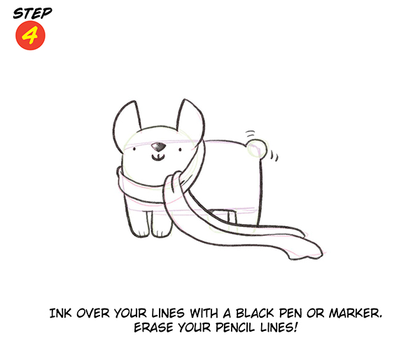 Ink over your lines with a black pen or marker. Erase your pencil lines!