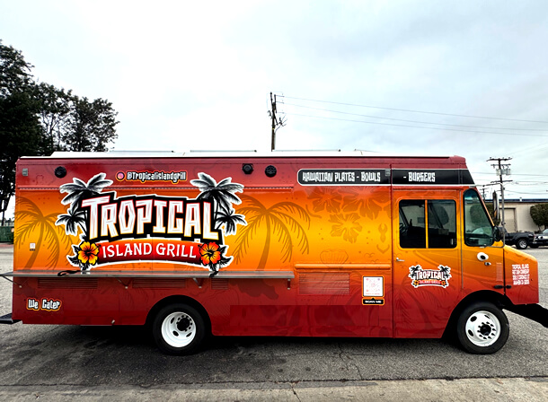 Tropical Island Grill is a Hawaiian food truck located in Orange County with delectable Hawaiian dishes and staples such as garlic shrimp plate, loco moco, huli huli chicken, kalua pork plate, kalbi beef short rib, chicken katsu, spam musubi and more. Also, the truck Island inspired smash burgers that are not only unique but also delicious and super popular.